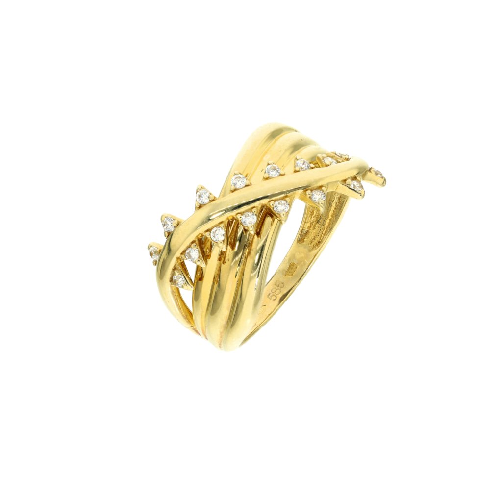 Dámský zlatý prsten vrstvený s kameny