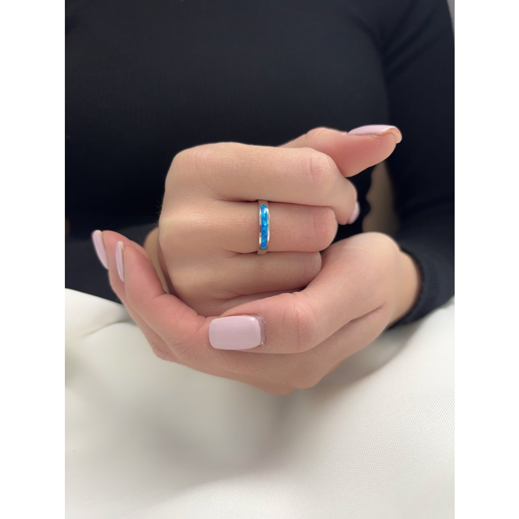 Stříbrný prsten kroužek s modrým opálem