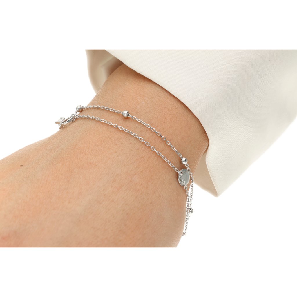 Stříbrný dvojitý náramek na nohu s přívěsky prstýnku, srdíčka a placky