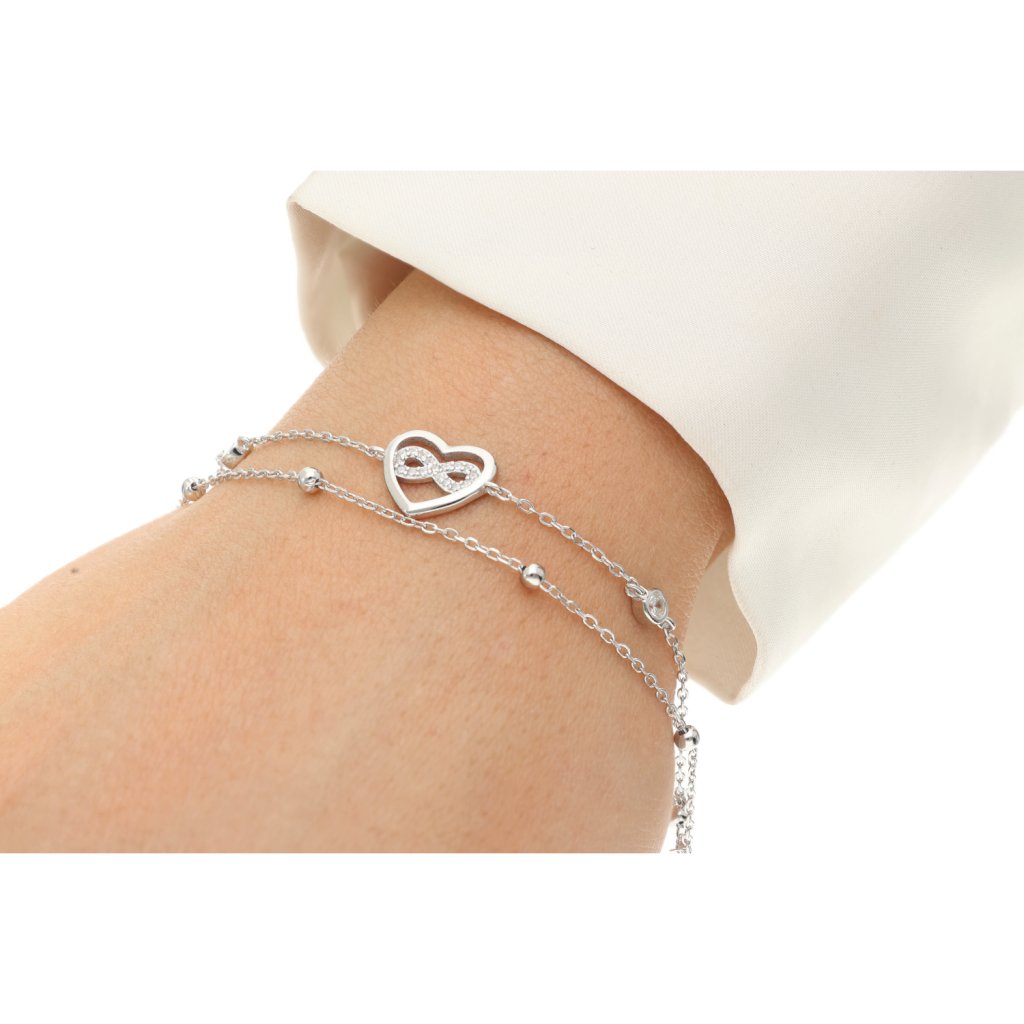 Stříbrný dvojitý náramek nekonečno v srdci