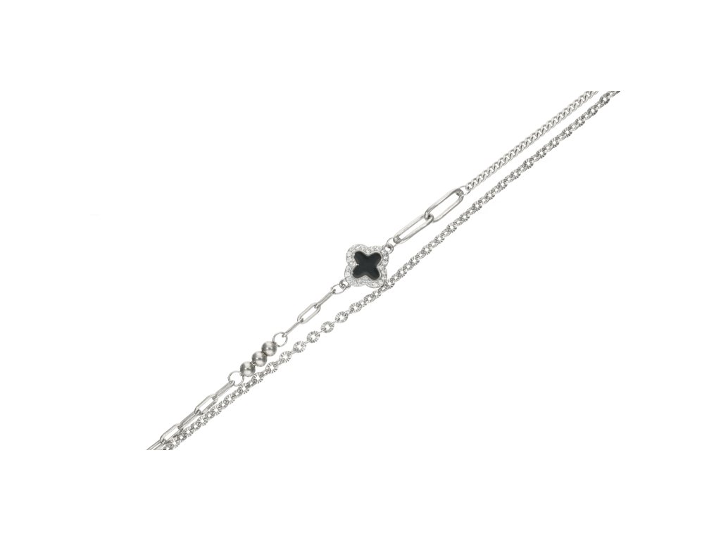 Stříbrný dvojitý náramek s černým čtyřlístkem
