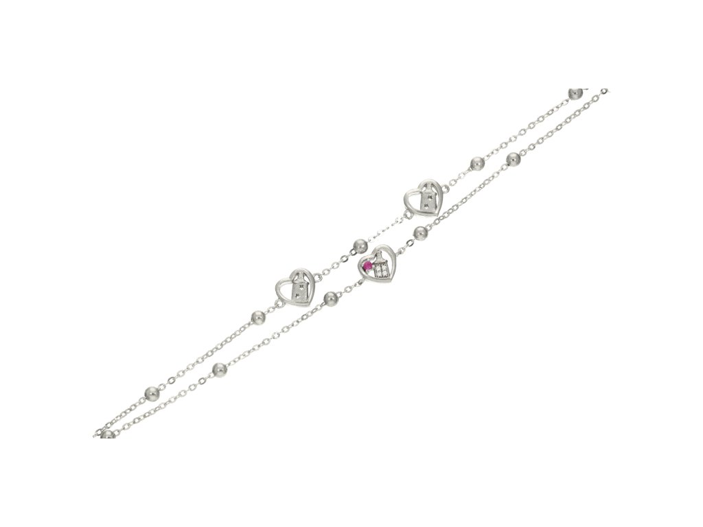 Stříbrný dvojitý náramek s přívěsky a kuličkami