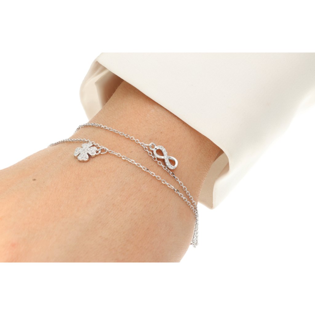 Stříbrný náramek na nohu se zirkonovými aplikacemi