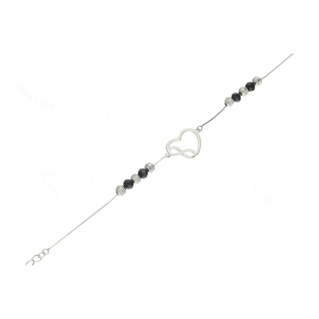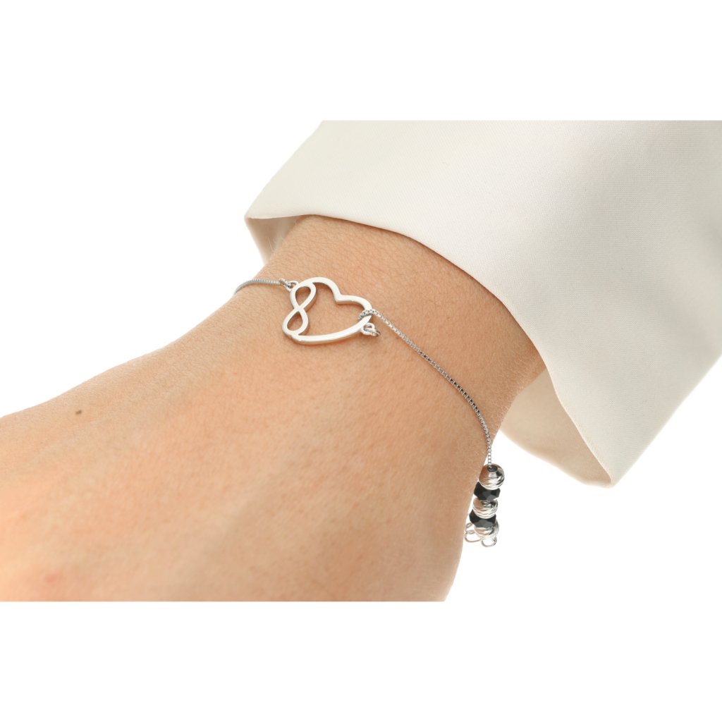 Stříbrný náramek nekonečno v srdci s kuličkami