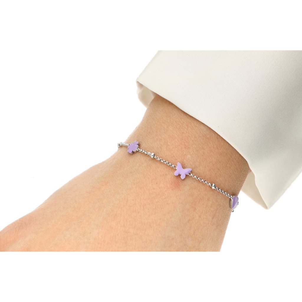 Stříbrný náramek s fialovými motivy