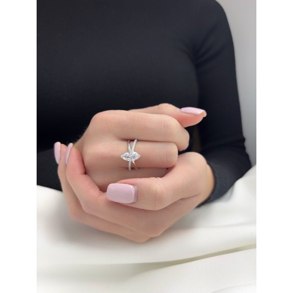 Stříbrný prsten křížený s centrálním kamenem se zirkony