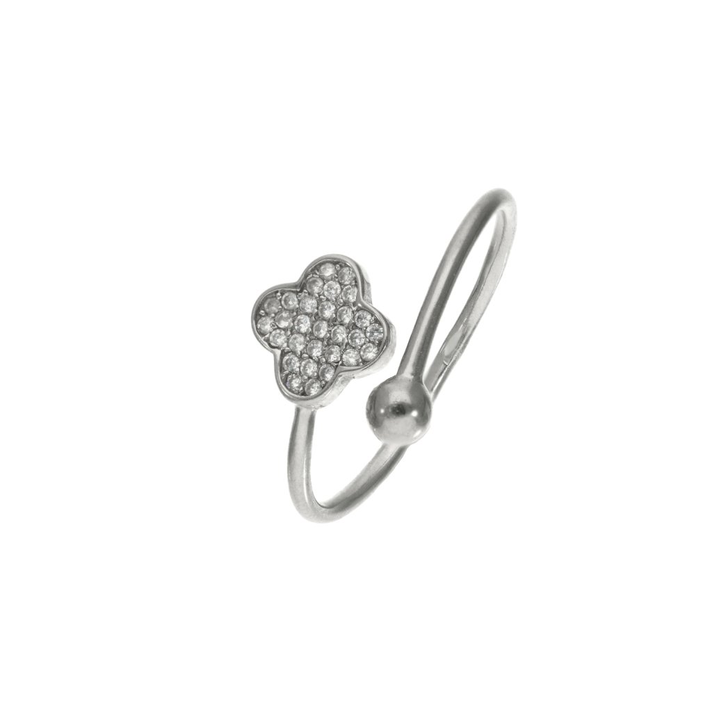 Stříbrný prsten otevřený čtyřlístek