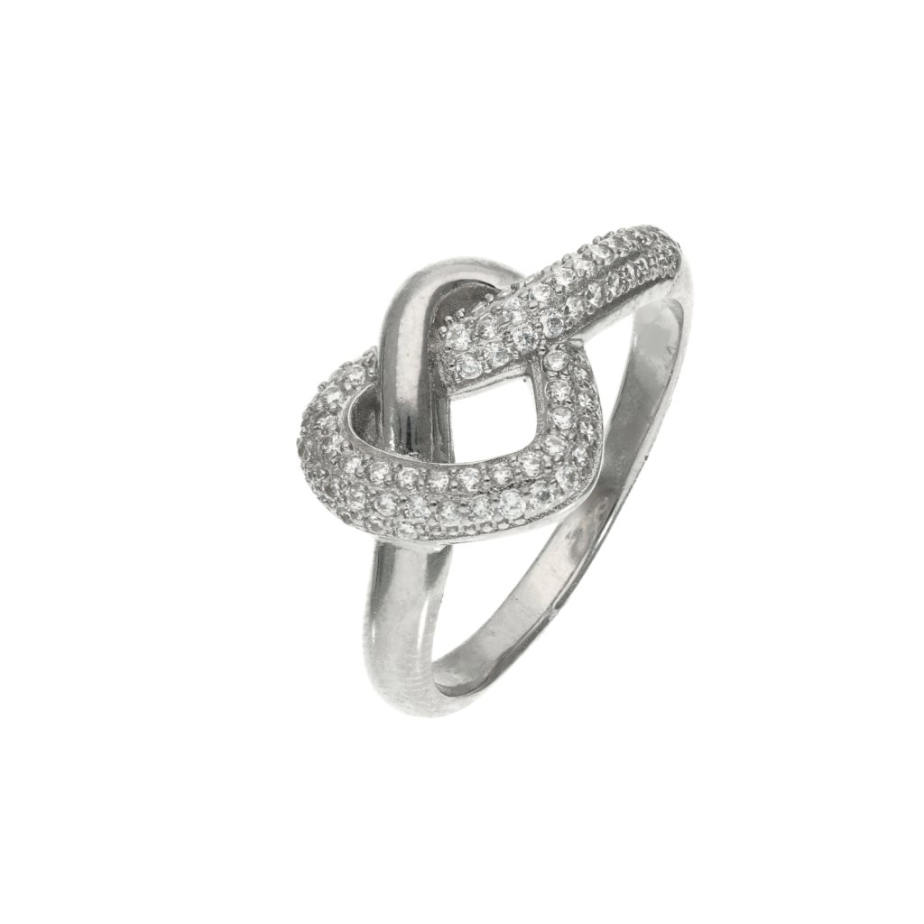 Stříbrný prsten propletené srdce