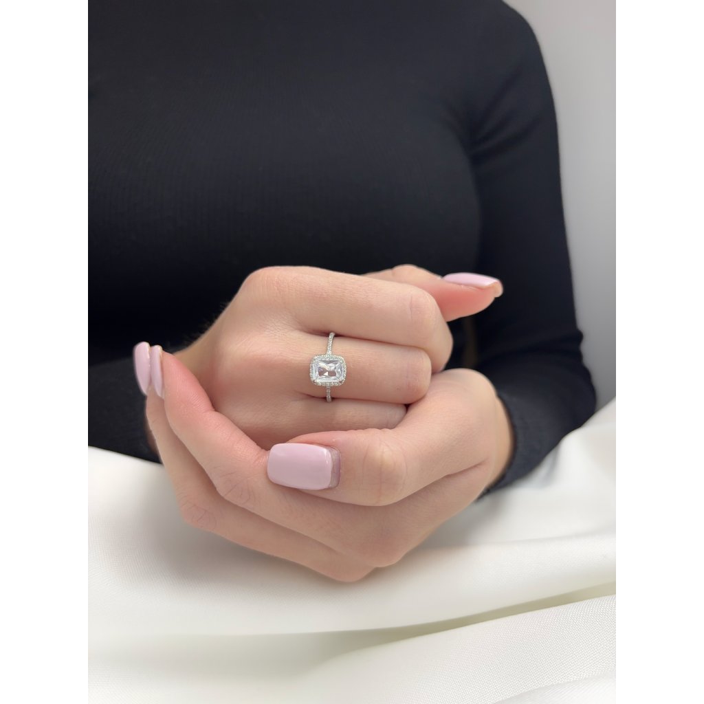 Stříbrný prsten s centrálním kamenem a zirkony