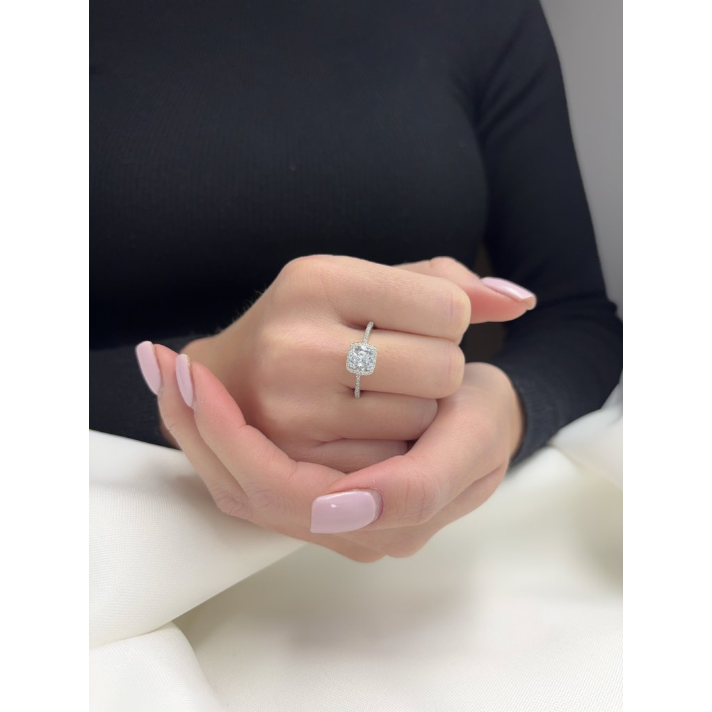 Stříbrný prsten se čtvercovým centrálním kamenem