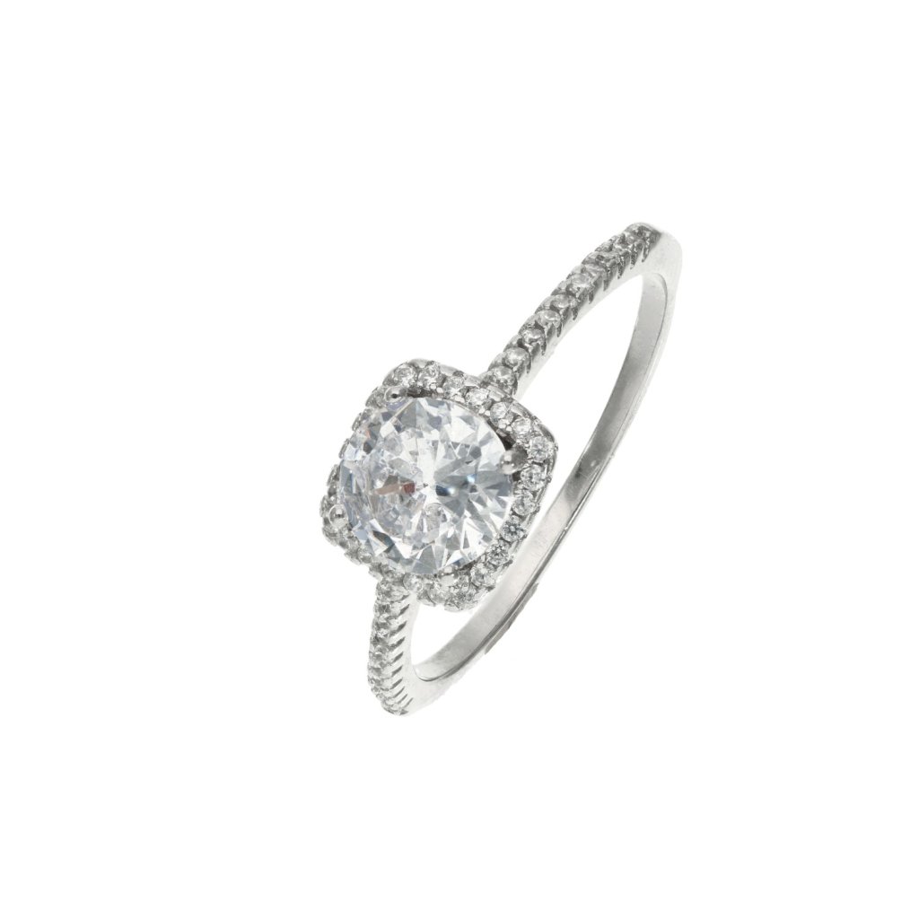 Stříbrný prsten se čtvercovým centrálním kamenem