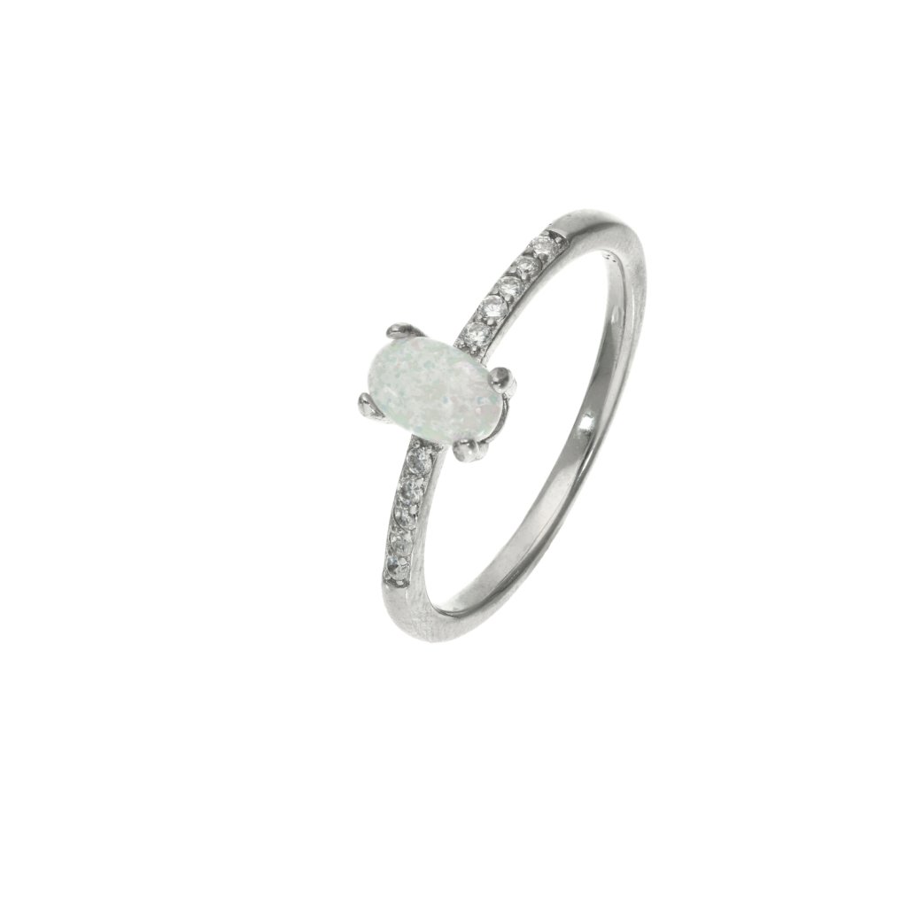 Stříbrný prsten se syntetickým opálem a zirkony