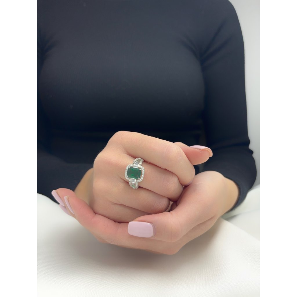 Stříbrný prsten se zeleným centrálním kamenem
