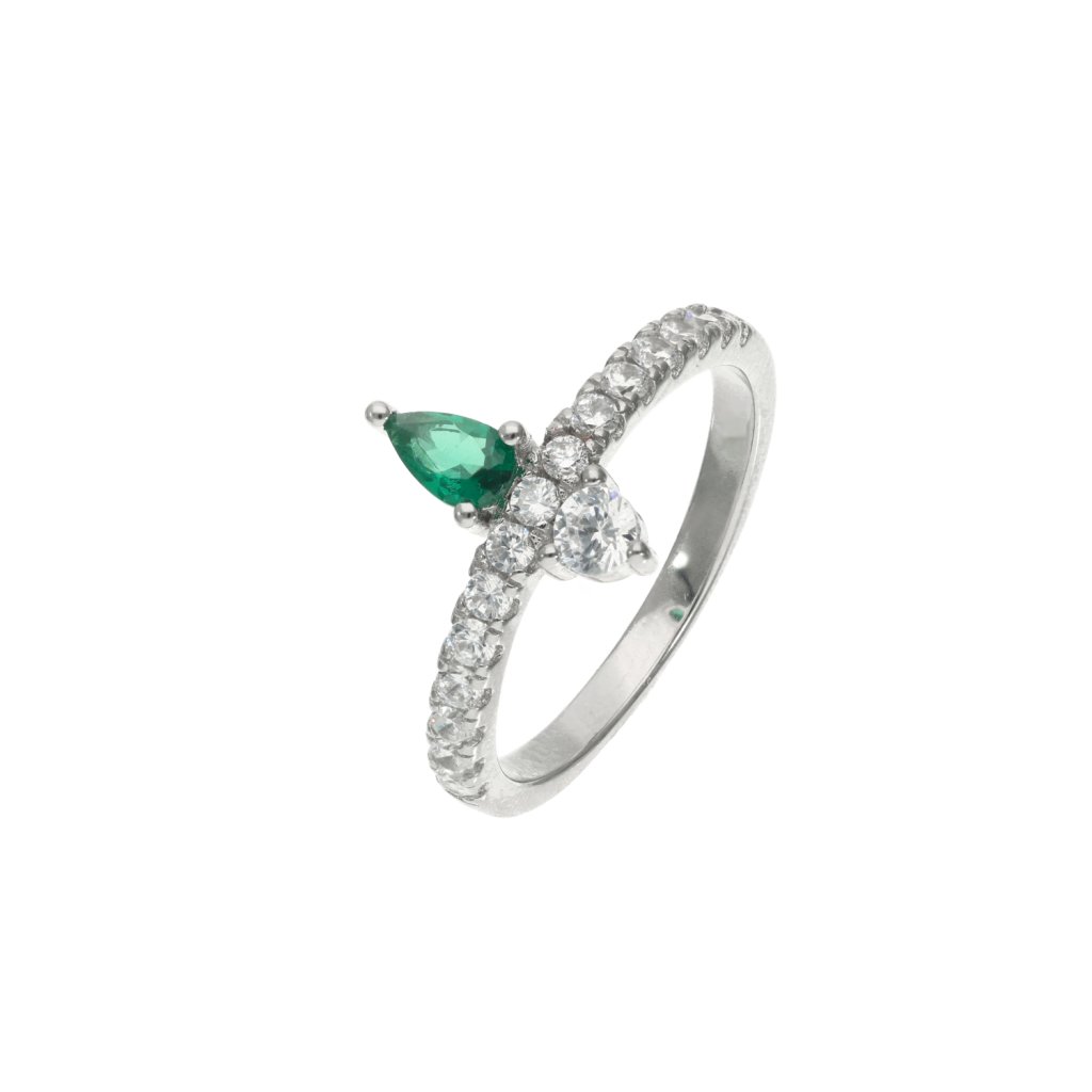Stříbrný prsten se zeleným centrálním kamenem