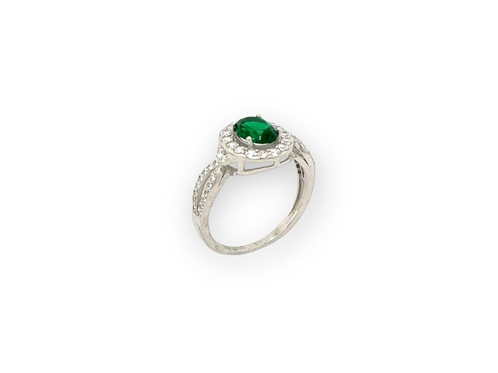 Stříbrný prsten se zeleným kamenem Ovál 2