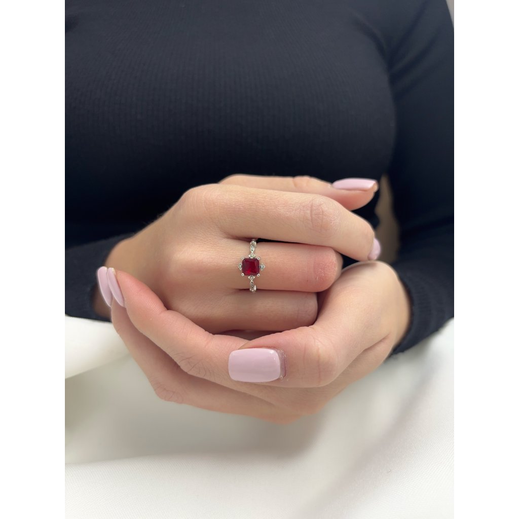 Stříbrný prstýnek s červeným kamenem