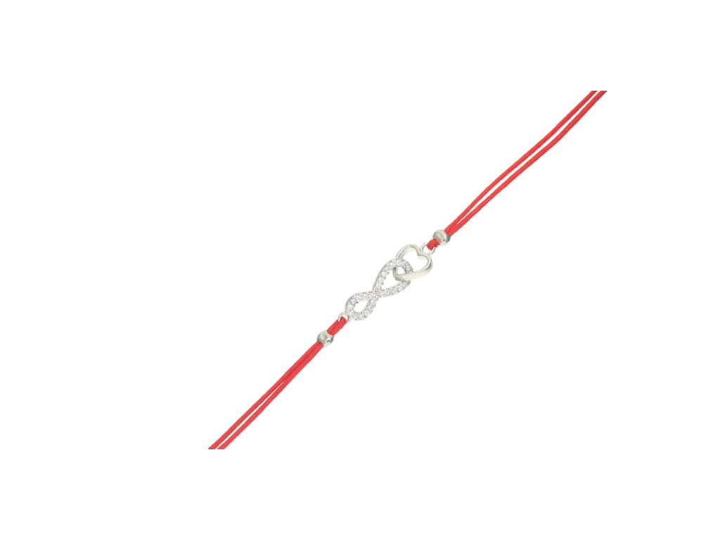 Stříbrný šňůrkový náramek srdce v nekonečnu