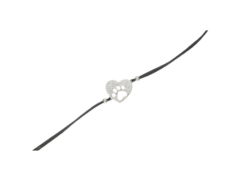 Stříbrný šňůrkový náramek tlapka v srdci