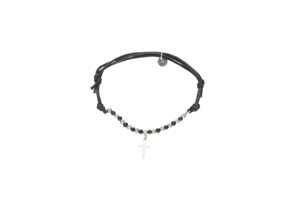 Stříbrný stahovací náramek s kuličkami a křížkem