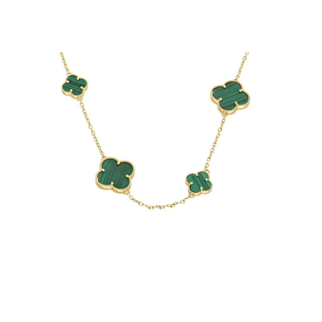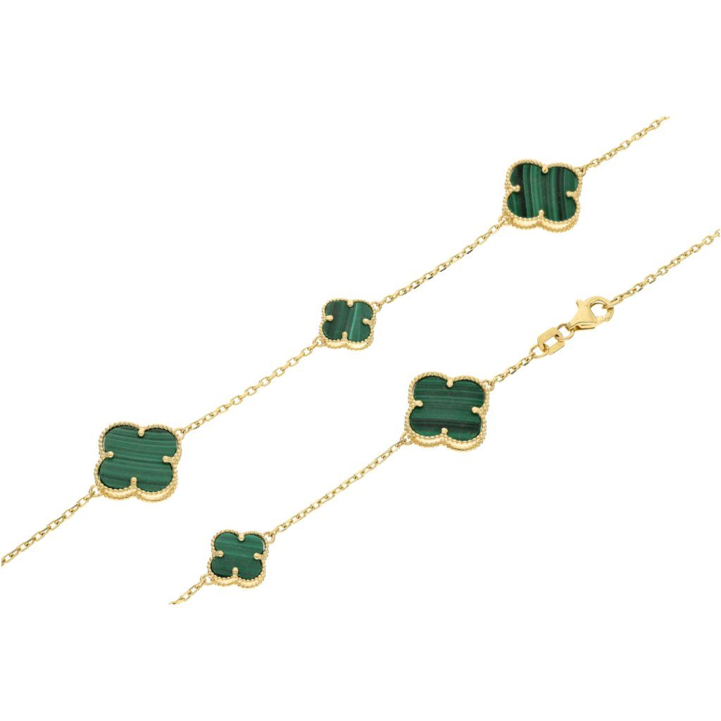 Zlatá celebritka / řetízek s přívěskem zelené kytičky