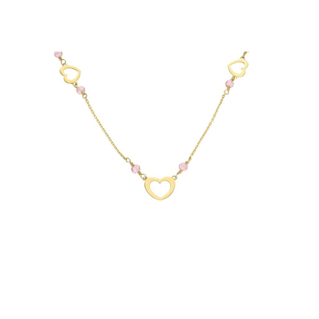 Zlatá celebritka / řetízek s přívěskem srdce s růžovým zdobením