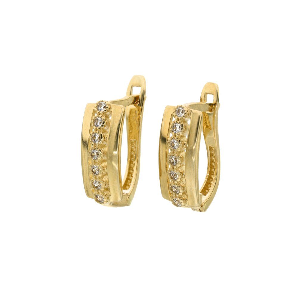Zlaté náušnice obdelník se zirkony