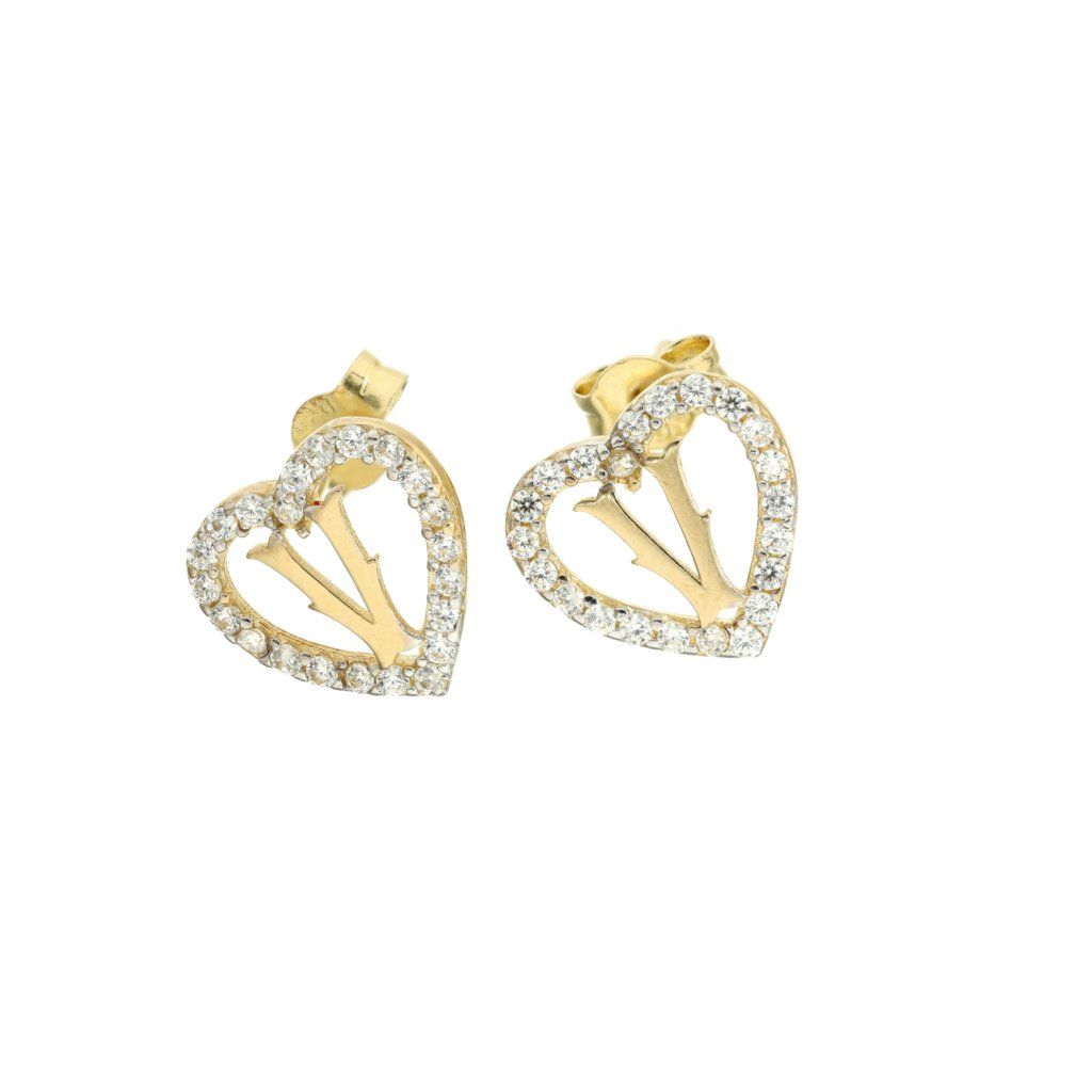 Zlaté náušnice s písmenem V se zirkony