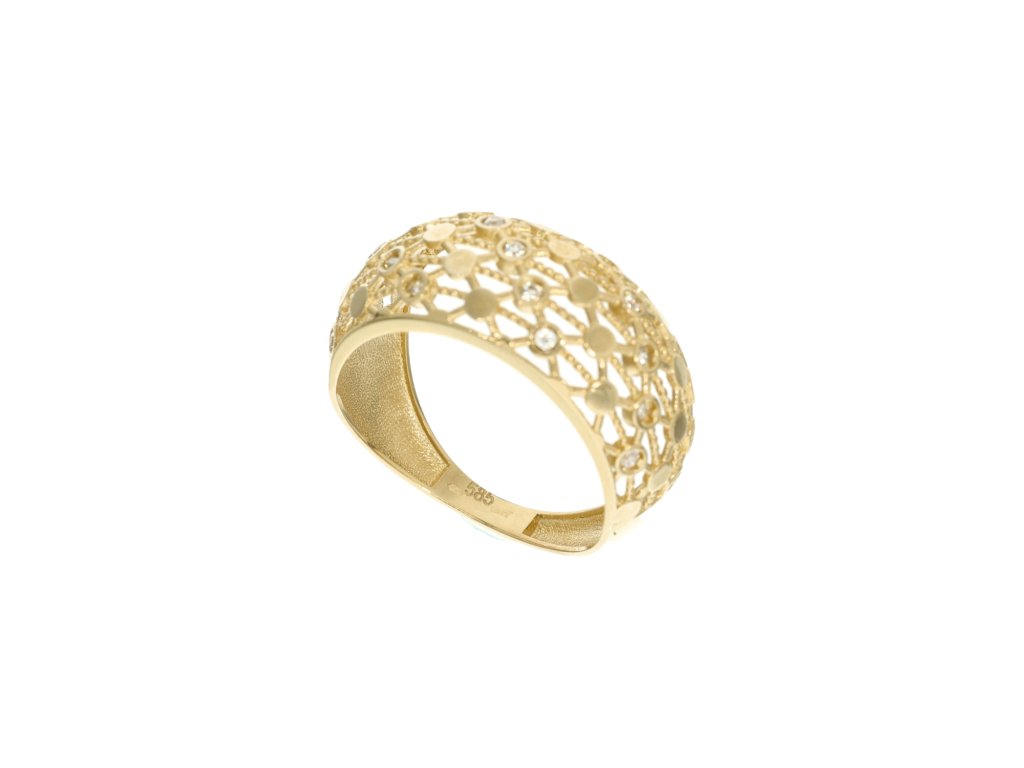 Zlatý dámský prsten gravírovaná obroučka se zirkony