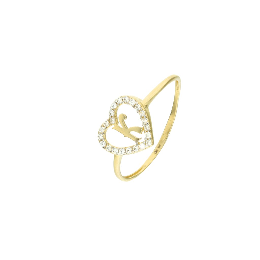 Zlatý dámský prsten srdce s písmenem K