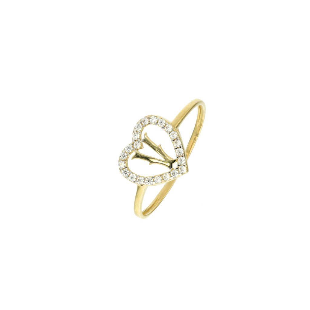 Zlatý dívčí/dámský prsten srdce s písmenkem V