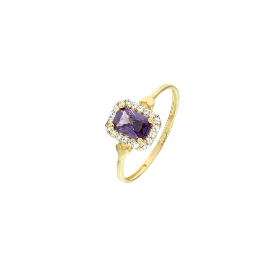 Zlatý minimalistický prsten s fialovým zdobením