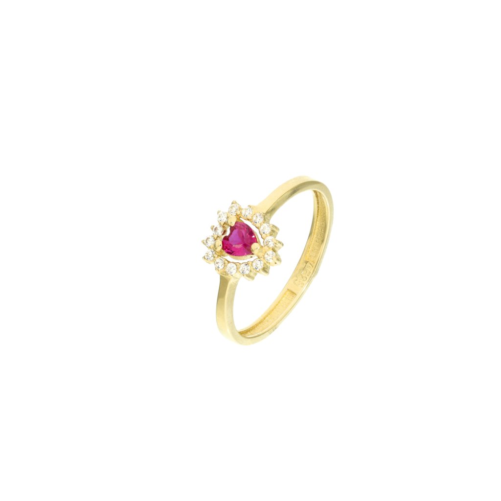 Zlatý minimalistický prsten srdce s rudým zdobením
