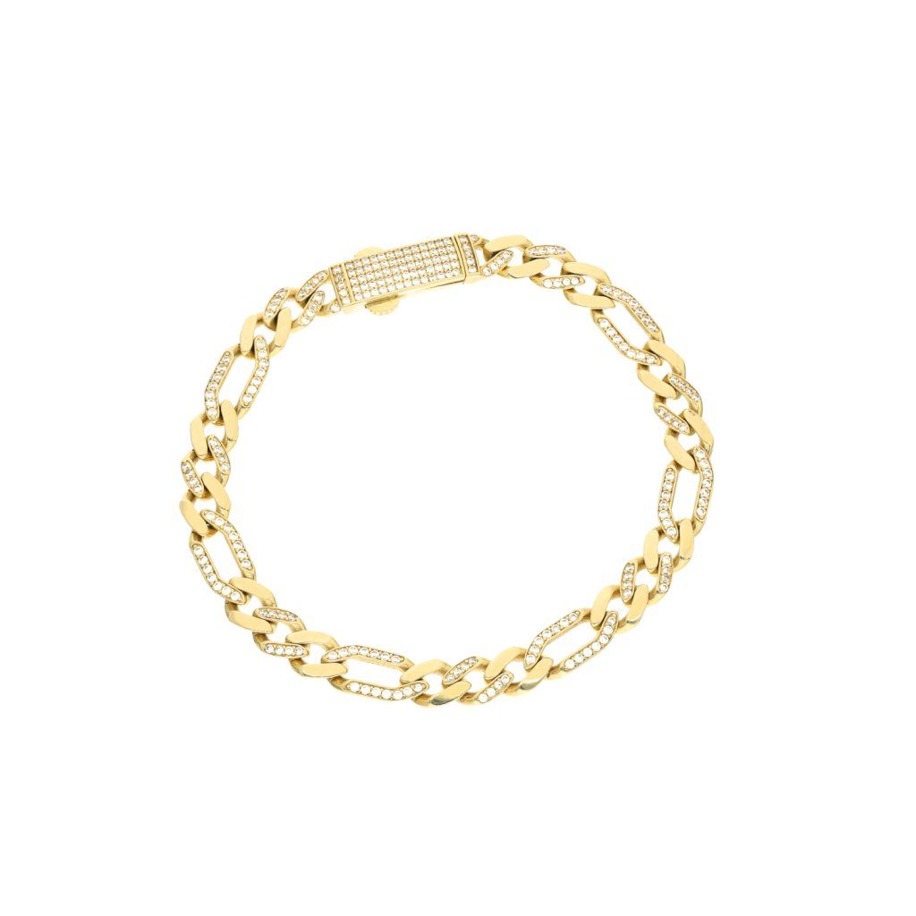 Zlatý náramek Figaro 3+1 zdobený zirkony 0.7cm