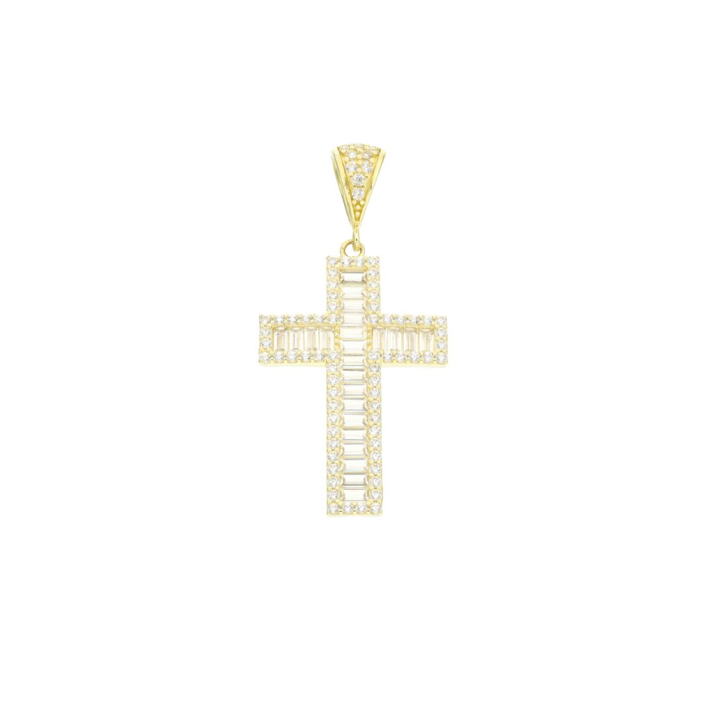 Zlatý přívěsek Kříž se zirkony bagetového brusu
