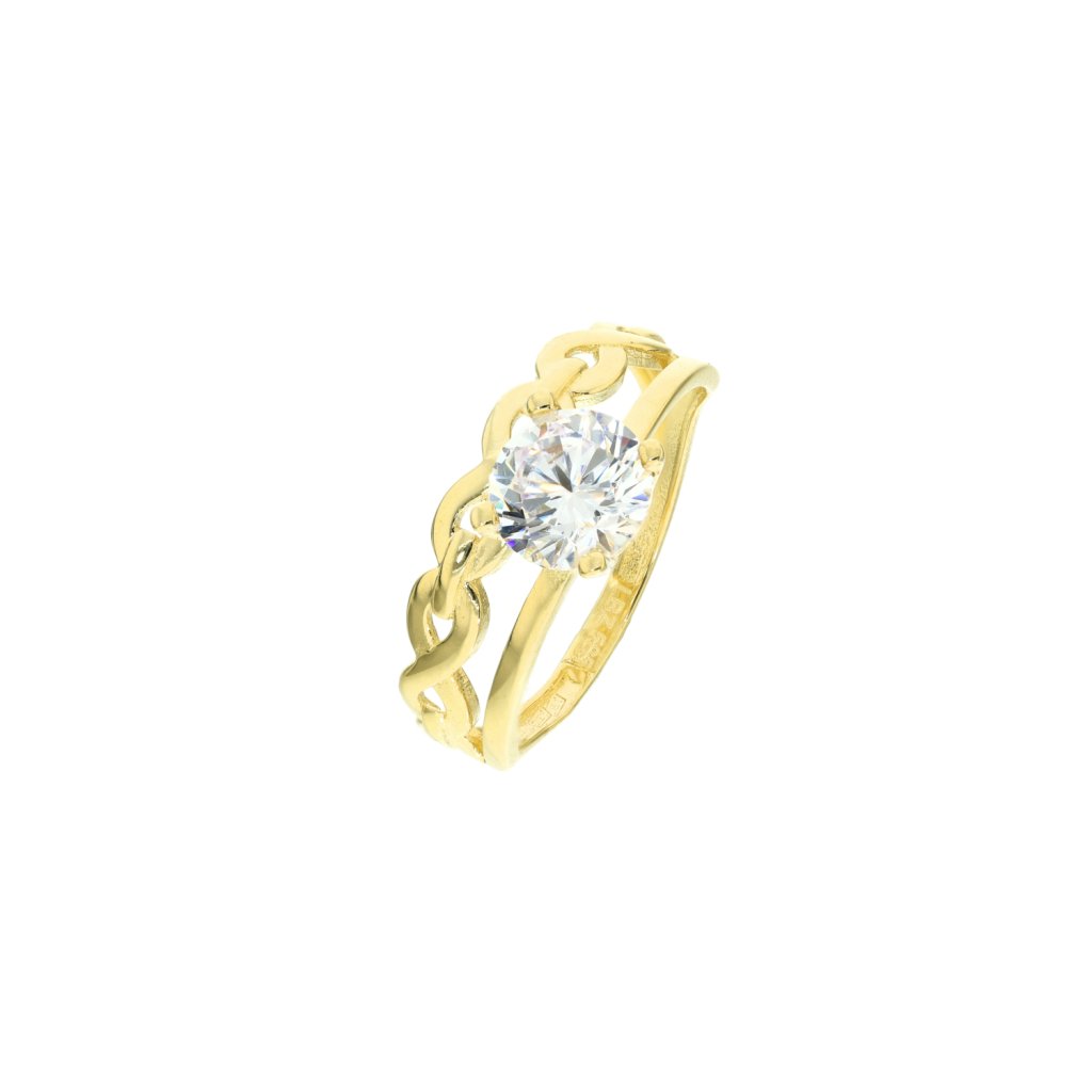 Zlatý prsten dvojitý s centrálním kamenem a vzorem nekonečno