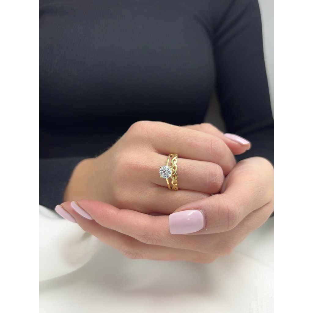 Zlatý prsten dvojitý s centrálním kamenem a vzorem nekonečno