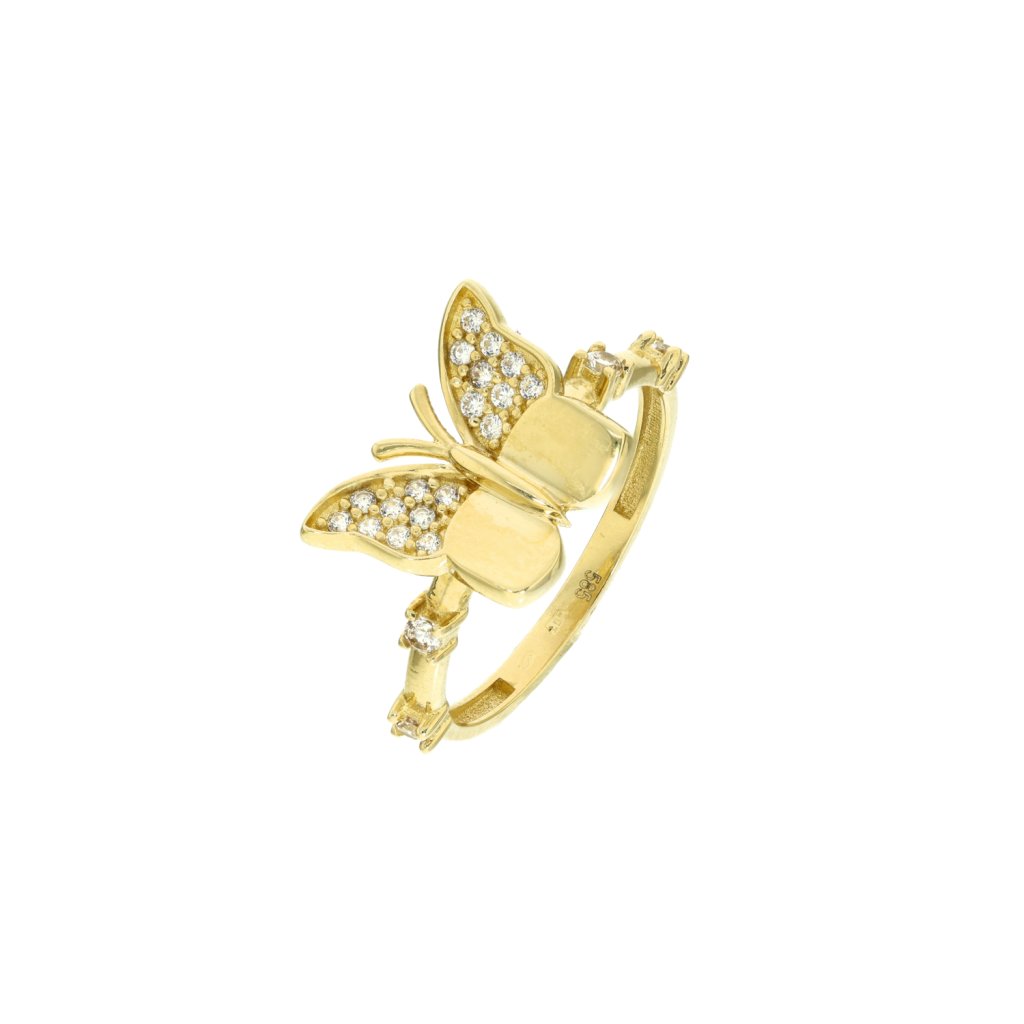 Zlatý prsten Motýlek zdobený zirkony