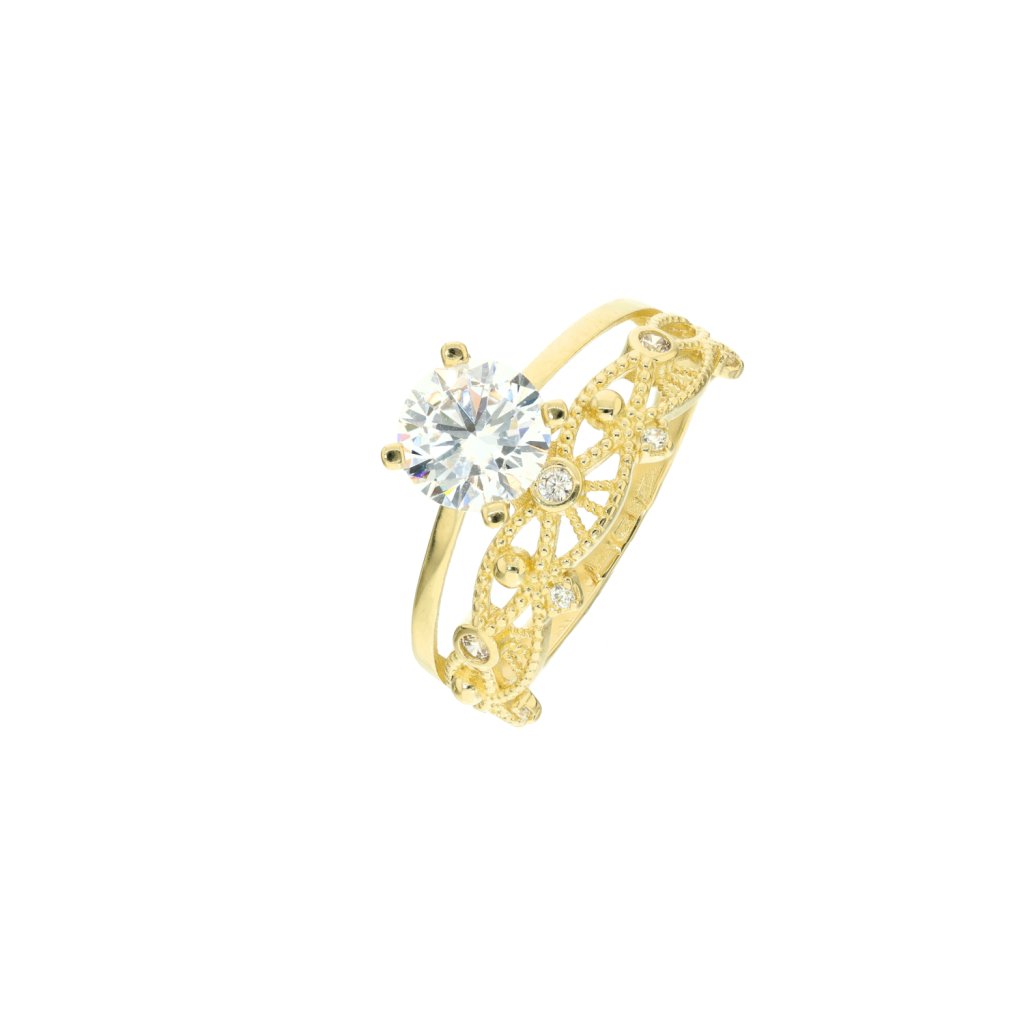Zlatý prsten s centrálním kamenem zdobený zirkony