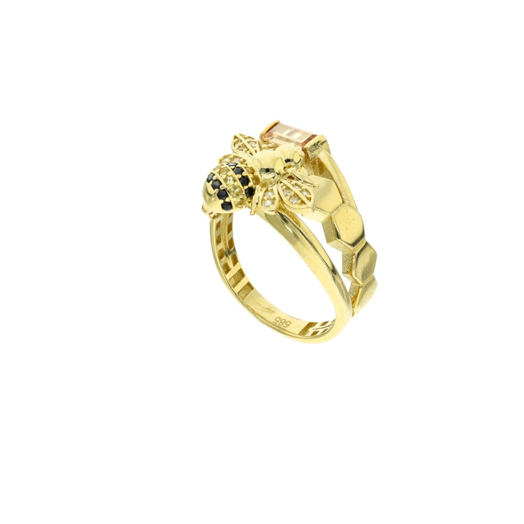 Zlatý prsten Včelka se zirkonem bagetového brusu