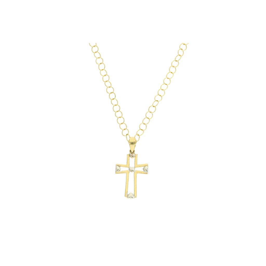 Zlatý řetízek s přívěskem kříže se srdíčky
