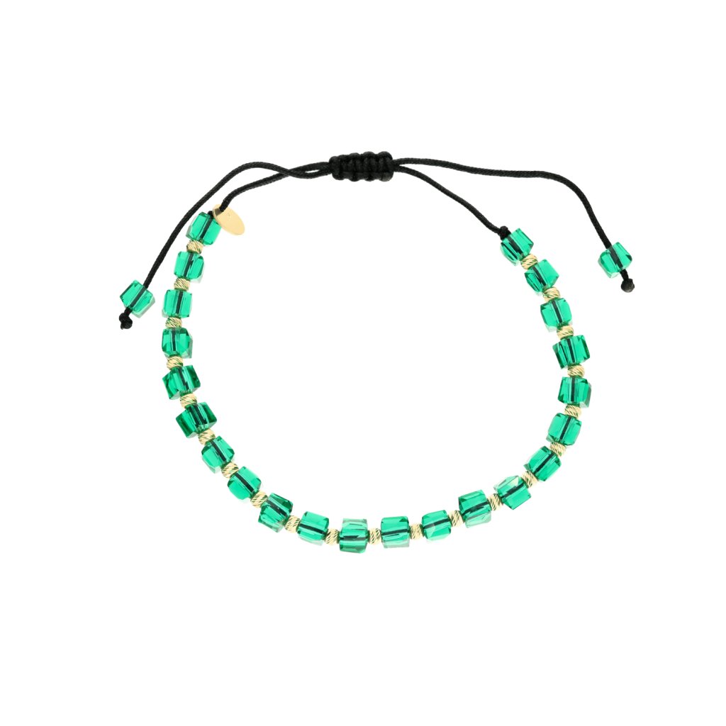 Zlatý šňůrkový UNI náramek zelený